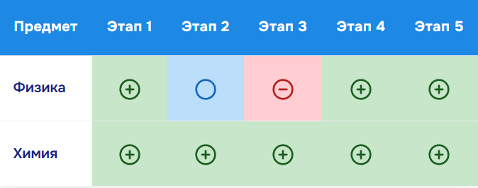 Для ЕГЭ и ОГЭ таблицы разные. Информация доступна для каждого предмета отдельно. Давайте разберемся, что значит каждый этап.